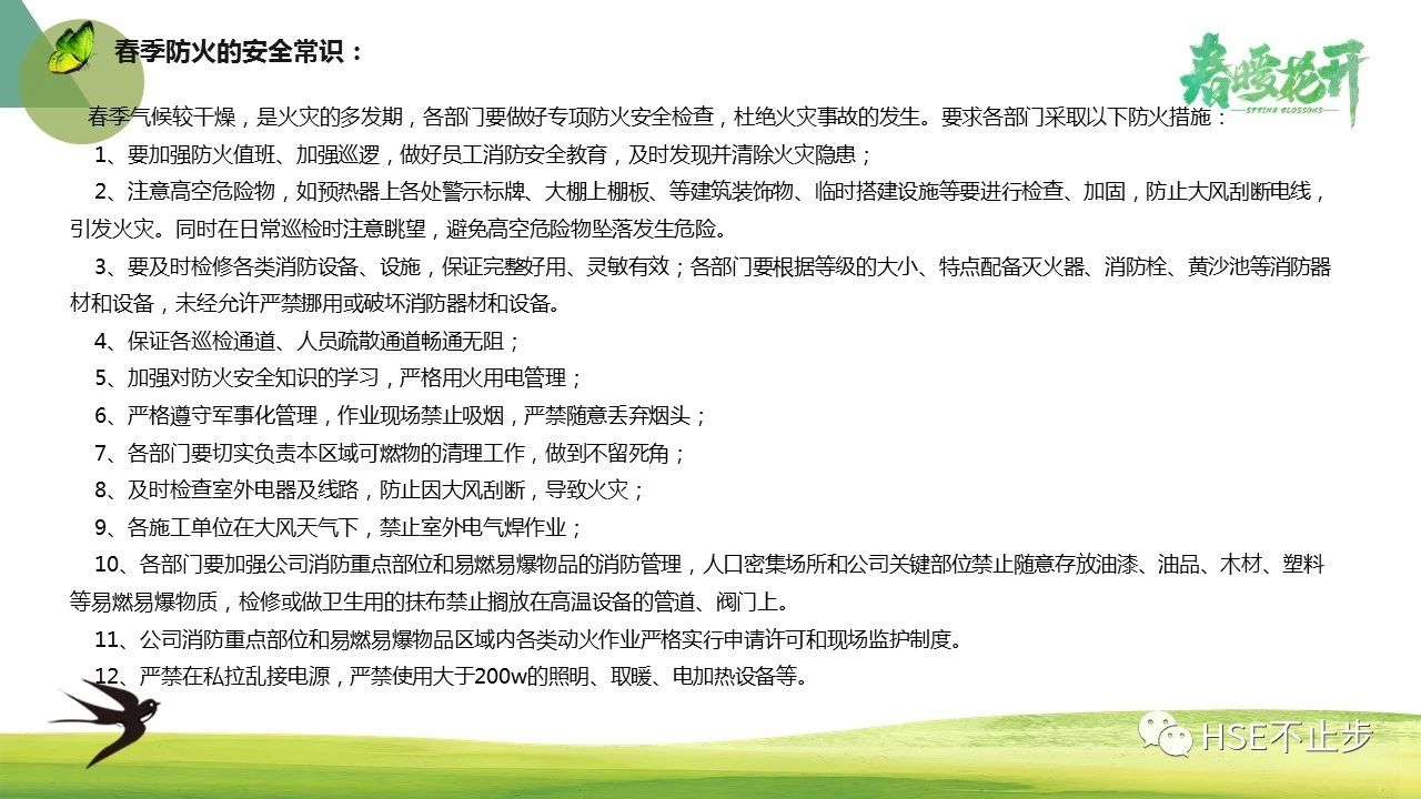 ★春季风干物燥,是火灾的高发期,日常工作中要注意正确用电与动火规范。