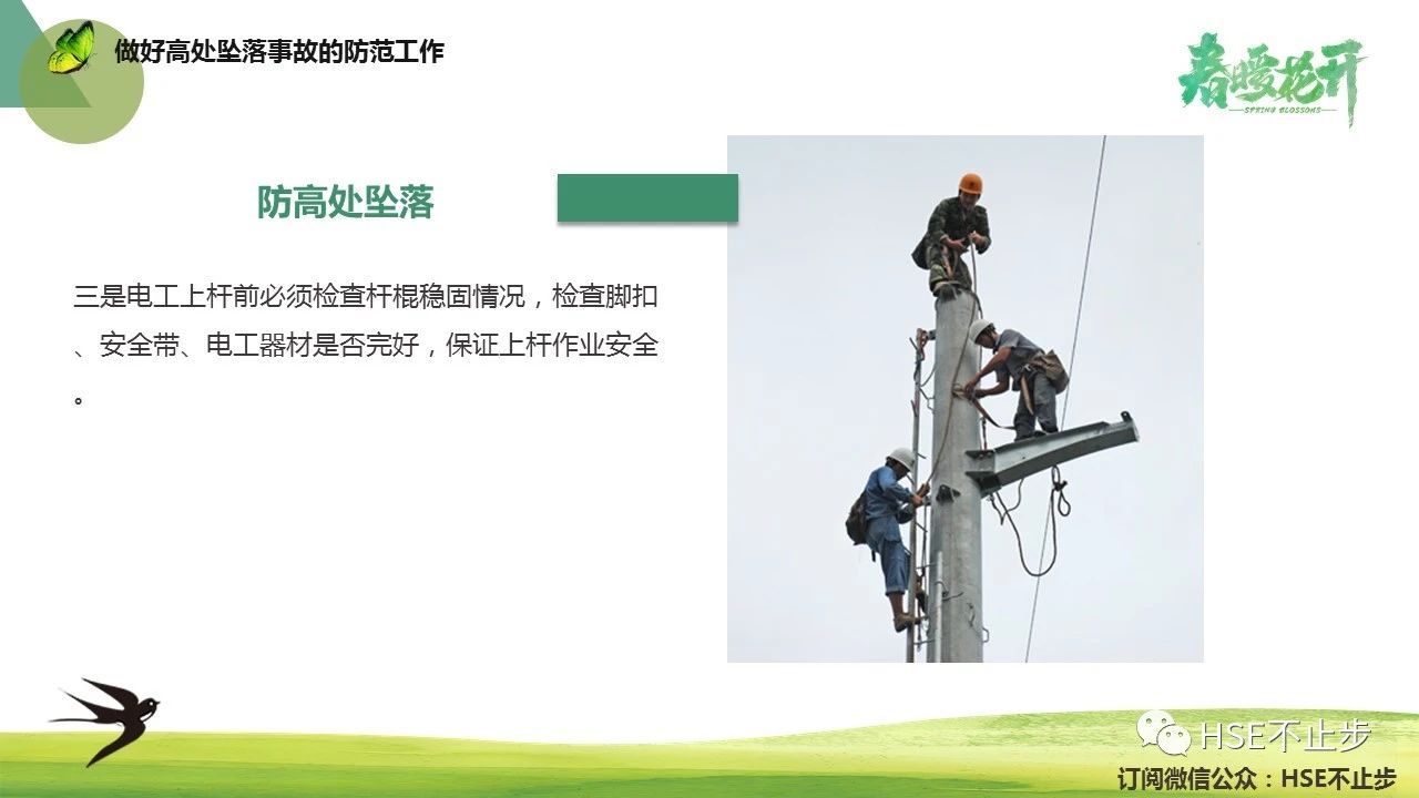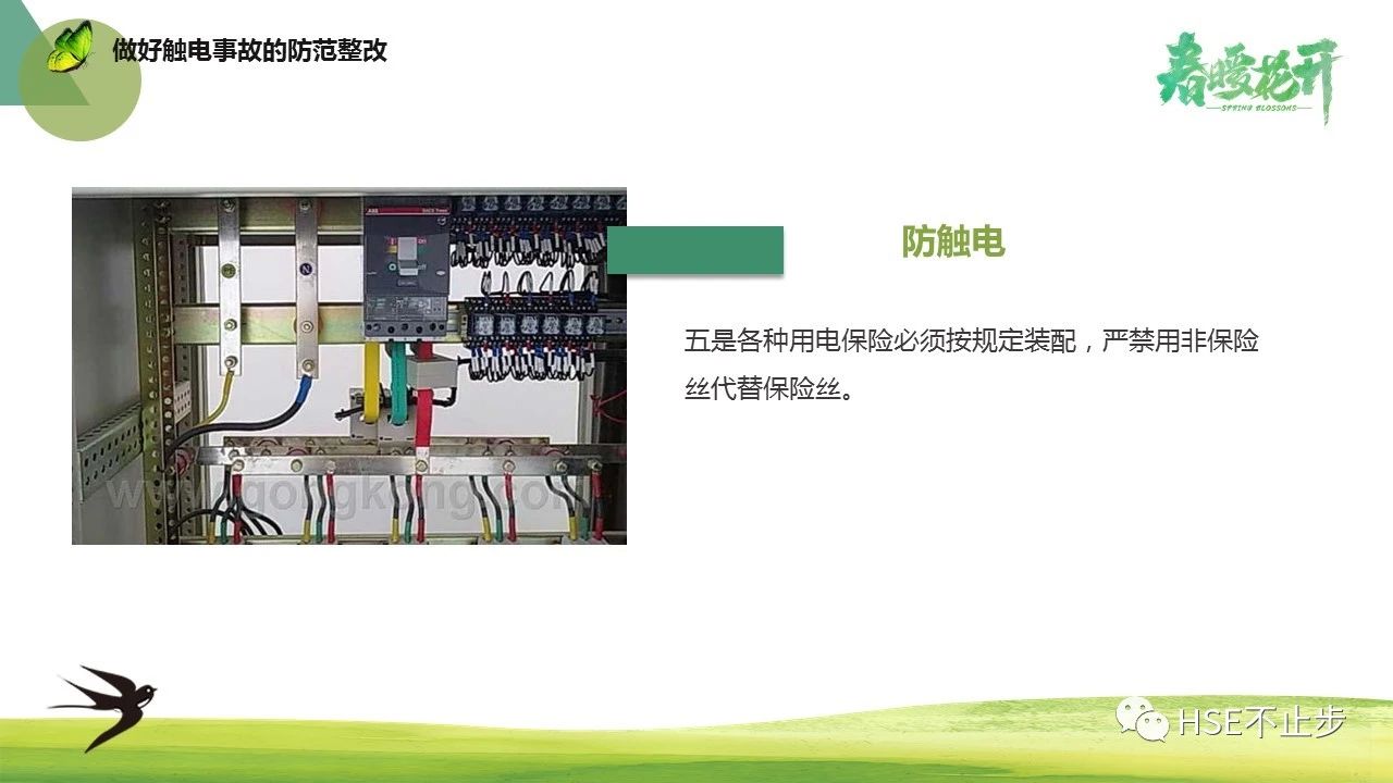 春季昼夜温差大,电气设备易受潮,地面导电性增强,容易造成触电事故的发生。