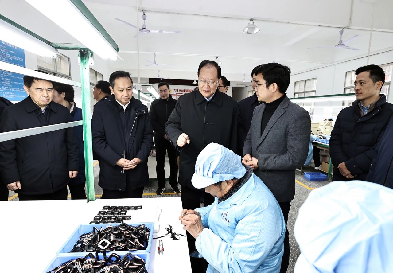 ▲毛伟明在慧华电子厂就业帮扶车间了解情况。