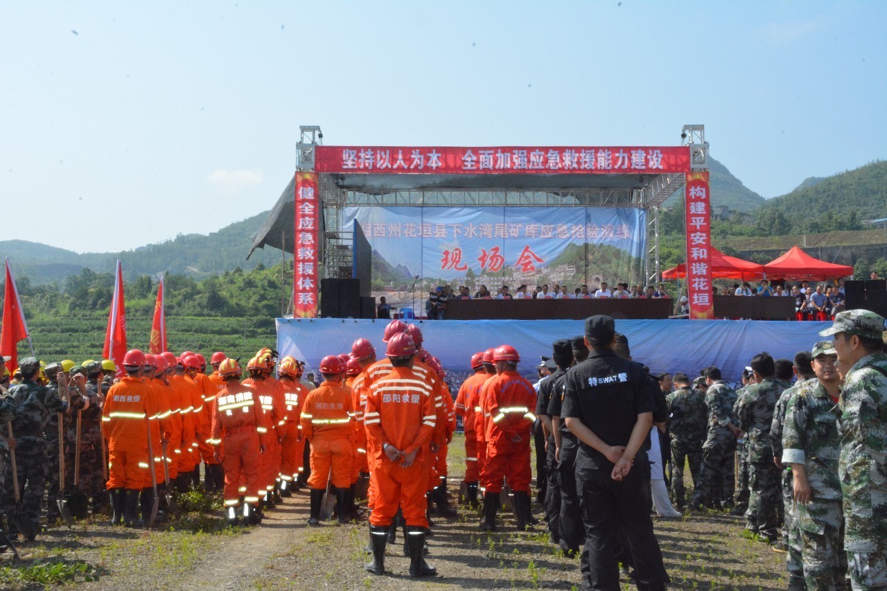 6月28日上午,由湖南省安委办、湘西州政府联合主办,湘西州安委办、花垣县政府承办的全省尾矿库应急抢险演练活动在花垣县成功举办,这是贯彻落实省安委会积极开展“安全生产月”系列活动的一项重要内容。湖南省安监局总工程师郑京杰,湘西州委常委、常务副州长向恩明等观摩演练。