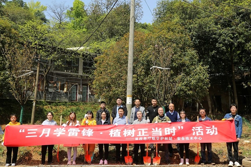 3月24日,湖南省森林消防航空护林站与省安全技术中心在省森林植物园附近联合开展以“三月学雷锋·植树正当时”为主题的义务植树活动。