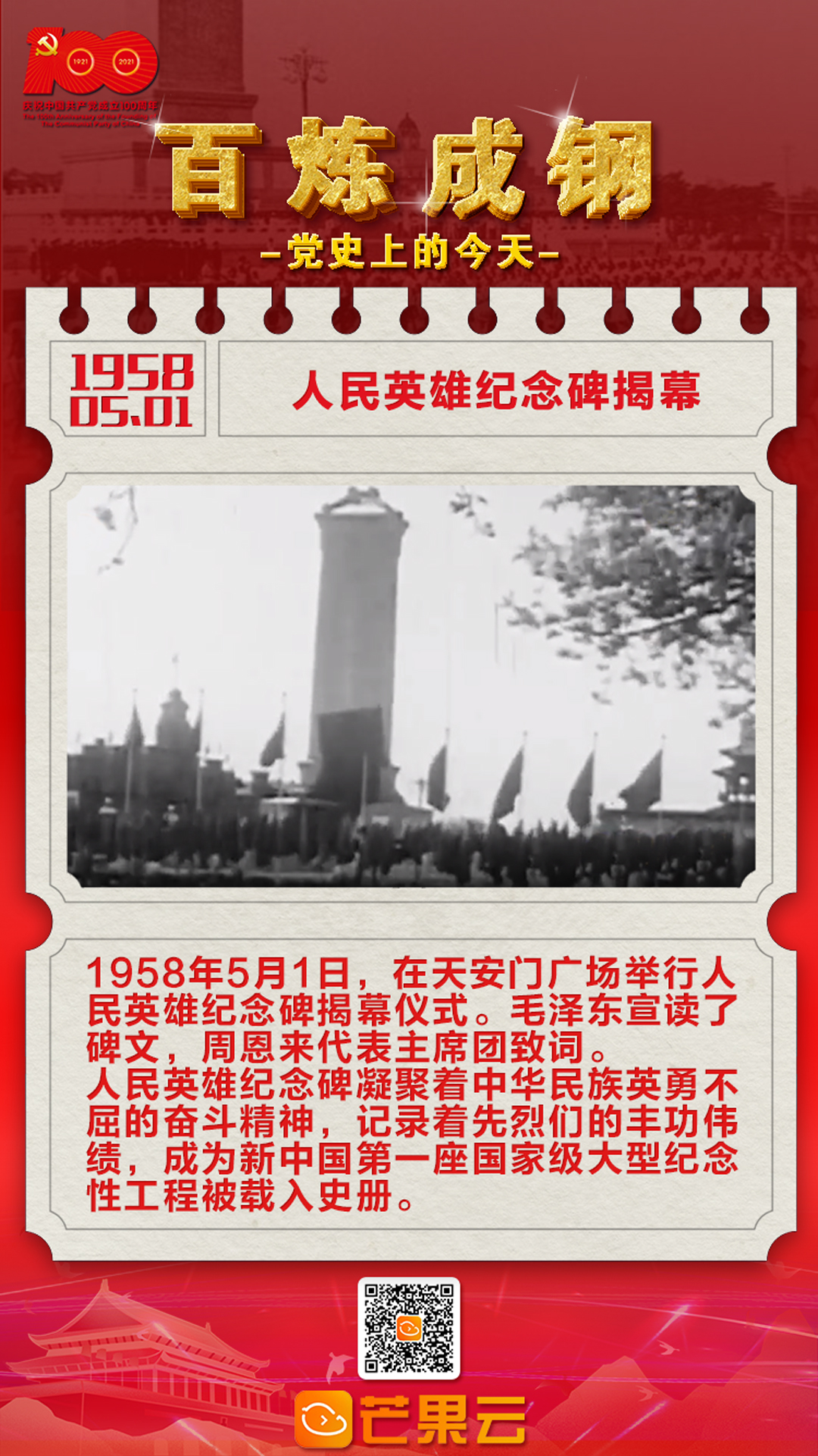 百炼成钢·党史上的今天:1958年5月1日,人民英雄纪念碑揭幕