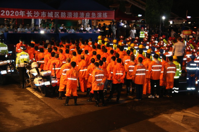 2020年5月5日23时整,长沙市天心区南湖路与书院路交汇处一派繁忙,11支近200人的专业抢险队伍在指挥长的统一调令下,紧张忙碌而又井然有序的开展交通管制、封堵密封井、筑防洪坝、电力抢修、隧道抢险排水等各项工作,经各部门快速响应、协同作战,险情得到了有效处置。原来,这是长沙市模拟2017年7月发生城区内涝开展的防涝排渍应急演练。