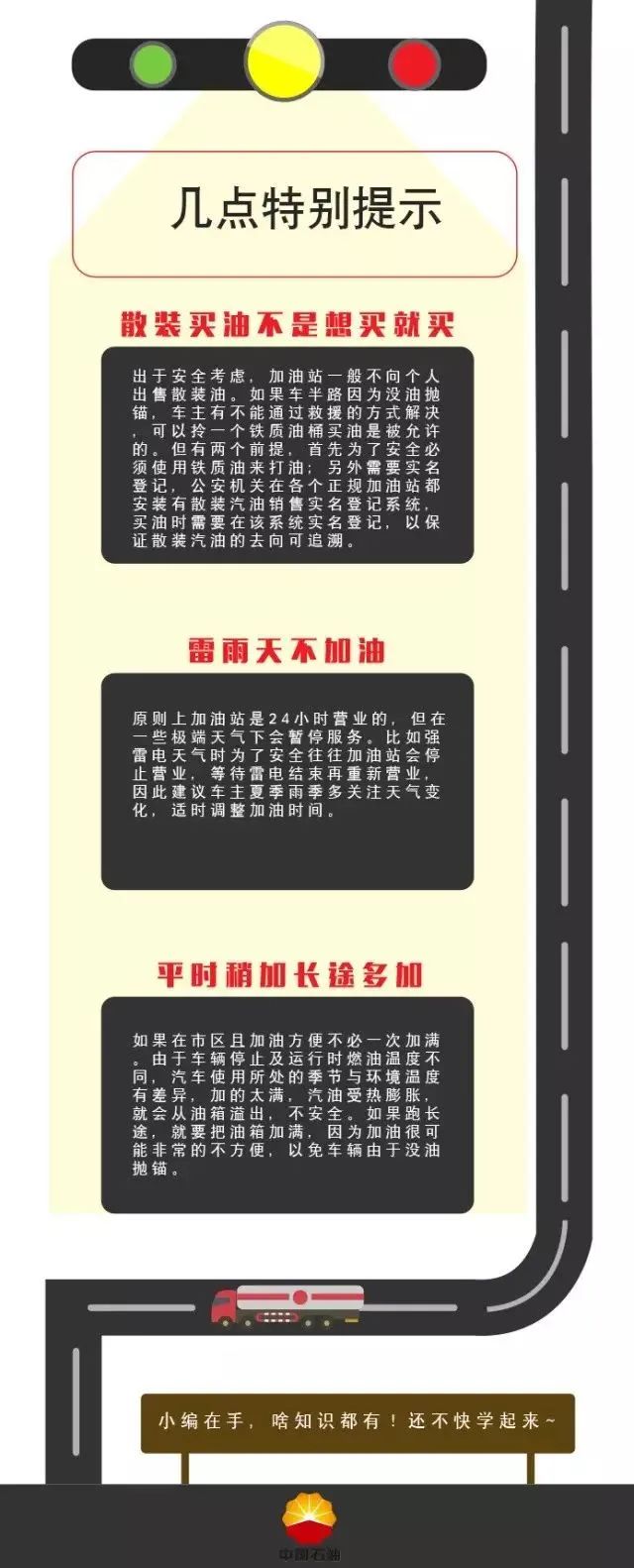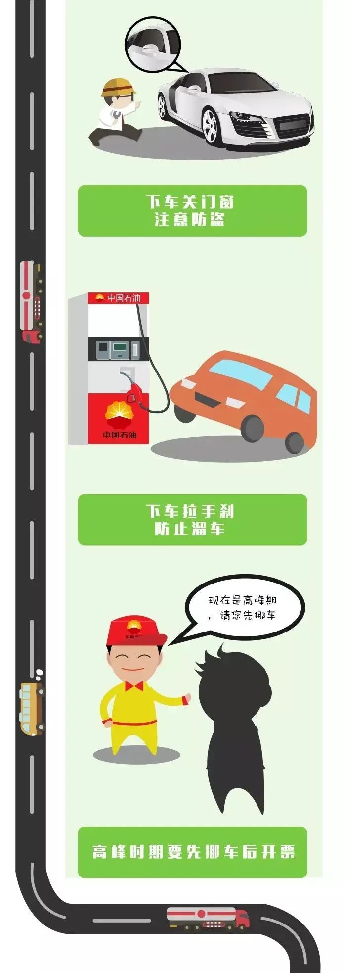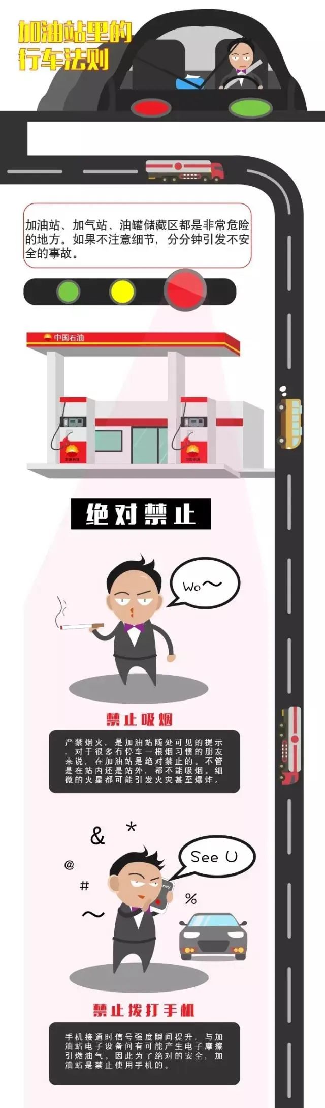 如果还不是很清晰,可以直接看👇下图中的行车准则,希望大家去加油站多注意安全!