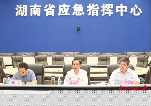 7月11日晚上,省委副书记、省长许达哲赴省应急指挥中心调度部署防汛抗灾工作。