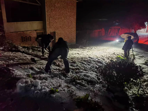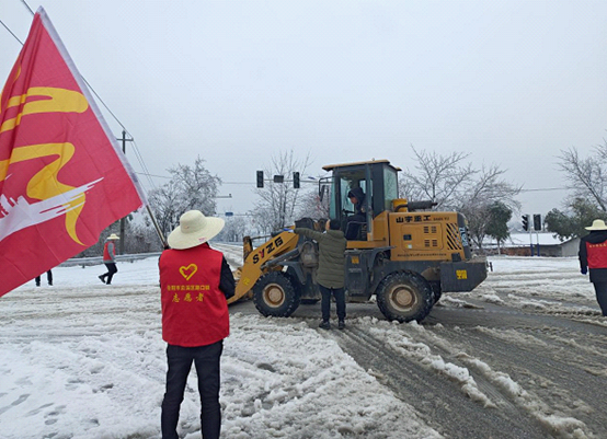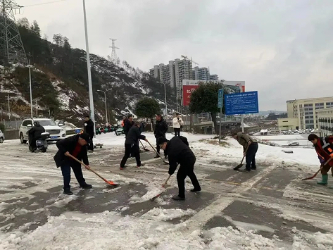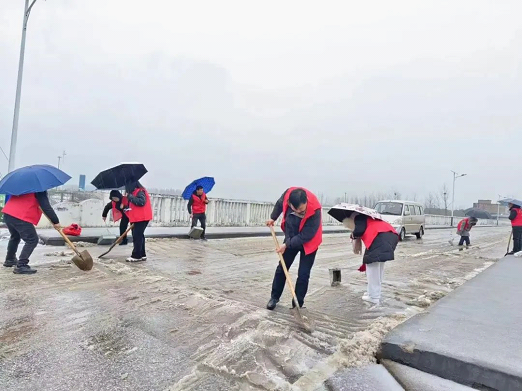 云溪区路口镇成立11支党员志愿队伍,发动党员干部及志愿者220余名,深入到积雪严重、结冰易滑的交通干道、主要路段、陡坡、临崖及急弯等地,认真清扫积雪及雪后障碍物,设置各类警示标志并进行交通劝导;常态化开展“敲门行动”,详细检查房屋安全、用电用气用水等情况,宣传应急知识,发放防寒应急物品。