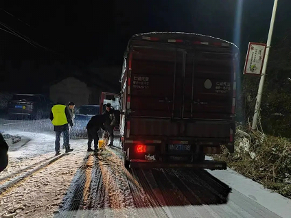 2月3日,永顺县小溪镇组织人员在已结冰路段开展值班值守,确保交通安全。