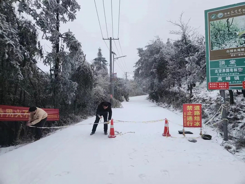 2月3日,古丈县高峰镇组织开展道路巡查,在高寒易结冰路段和重要路口摆放警示标牌和反光锥桶,采取临时管控措施禁止车辆通行。