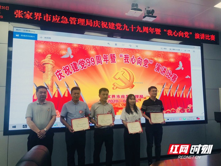 红网时刻张家界7月1日讯(记者 廖秋萍 通讯员 杨镒菲)6月30日,在中国共产党成立九十九周年来临之际,张家界市应急管理局举行“庆祝建党99周年暨我心向党”演讲比赛。