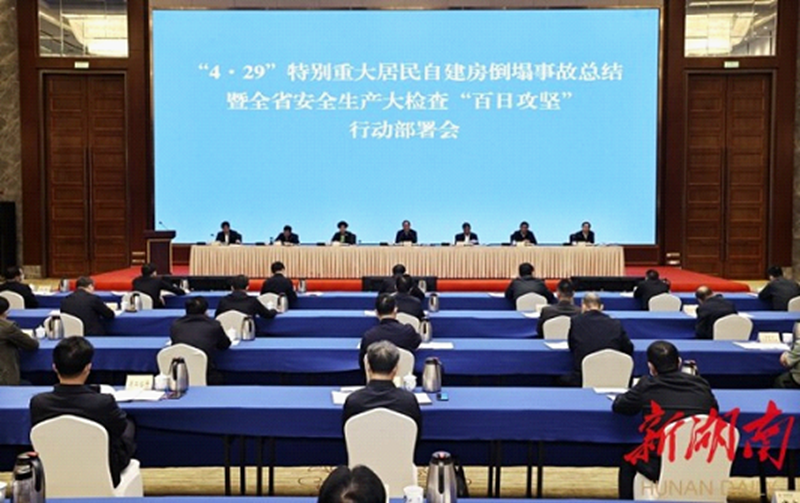 5月20日上午,长沙“4.29”特别重大居民自建房倒塌事故总结暨全省安全生产大检查“百日攻坚”行动部署会召开,省委副书记、省长毛伟明出席并讲话。