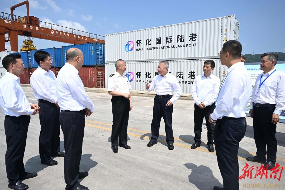 怀化国际陆港是对接RCEP和东盟国家的战略平台,于2021年启动建设,目前已打通3条国际物流大通道,今年一季度共开行班列113列。沈晓明来到怀化国际陆港,详细了解规划建设、现代物流、班列开行、商品查验等情况。他说,省委、省政府对怀化国际陆港建设寄予期望,要找准比较优势和核心竞争力,推动港产城一体化发展,做好临港工业区建设这篇文章,以产业牵引带动物流发展,以现代物流夯实产业支撑,保持耐心,久久为功,为湖南打造内陆地区改革开放高地作出新贡献。