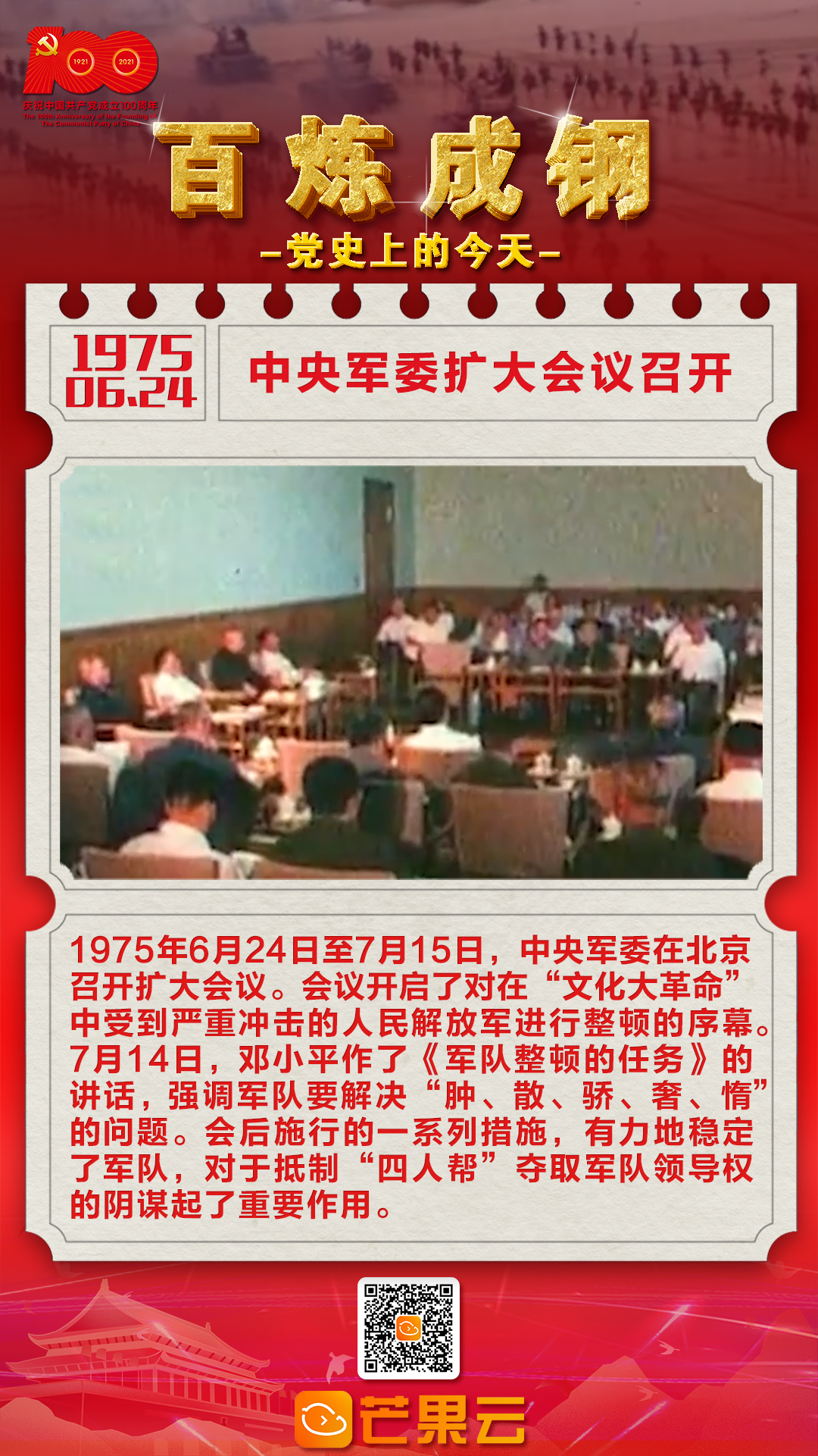 百炼成钢·党史上的今天:1975年6月24日,中央军委扩大会议在北京开幕