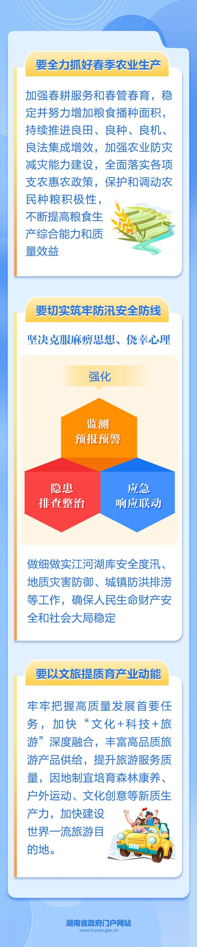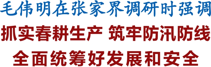 省委副书记、省长毛伟明在张家界市调研。他强调,要深入贯彻习近平总书记关于湖南工作的重要讲话和指示批示精神,聚焦高质量发展首要任务,扎实做好产业发展、春耕生产、防汛备汛等工作,全面统筹好发展和安全,以实干实绩实现“十五五”良好开局。