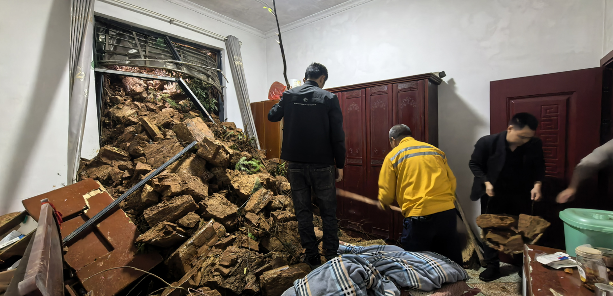12时30分,该区域山体发生滑坡,大量泥土滑落冲毁房屋2间。因前期巡查到位、转移果断,受威胁群众已全部提前撤离,未出现人员伤亡。